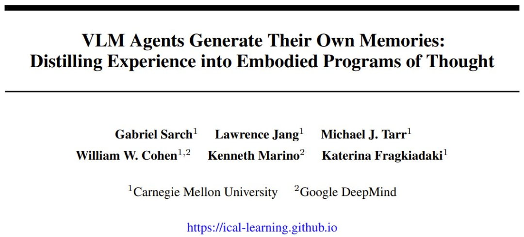 卡内基・梅隆大学(CMU)和 Google DeepMind 的一篇标题为「VLM 智能体生成自己的记忆:将经验蒸馏成具身思维程序」的研究发现,通过使用低质量数据和反馈,或许能够解决这个高质量数据不足的问题。其中提出的 ICAL 可让 LLM 和 VLM 根据次优演示和人工反馈创建有效的提示词,从而改善决策并减少对专家演示的依赖。该论文是 NeurIPS 2024 的 Spotlight 论文,项目代码也已发布。