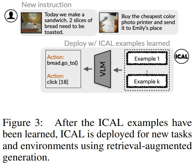 学习得到 ICAL 样本之后,就可以使用检索增强式生成部署起来,用于新任务和新环境。