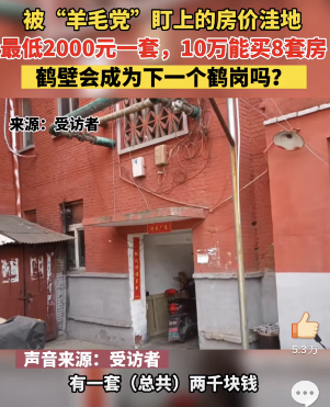 这个故事中的主人公是在一个叫鹤壁的城市,只花了10万块买8套房,其中最便宜的一套1000块买入