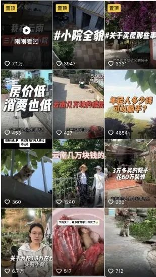 最后,我们发现这位女生在云南买房之后,开始利用小院做视频内容,发在自己的抖音号上