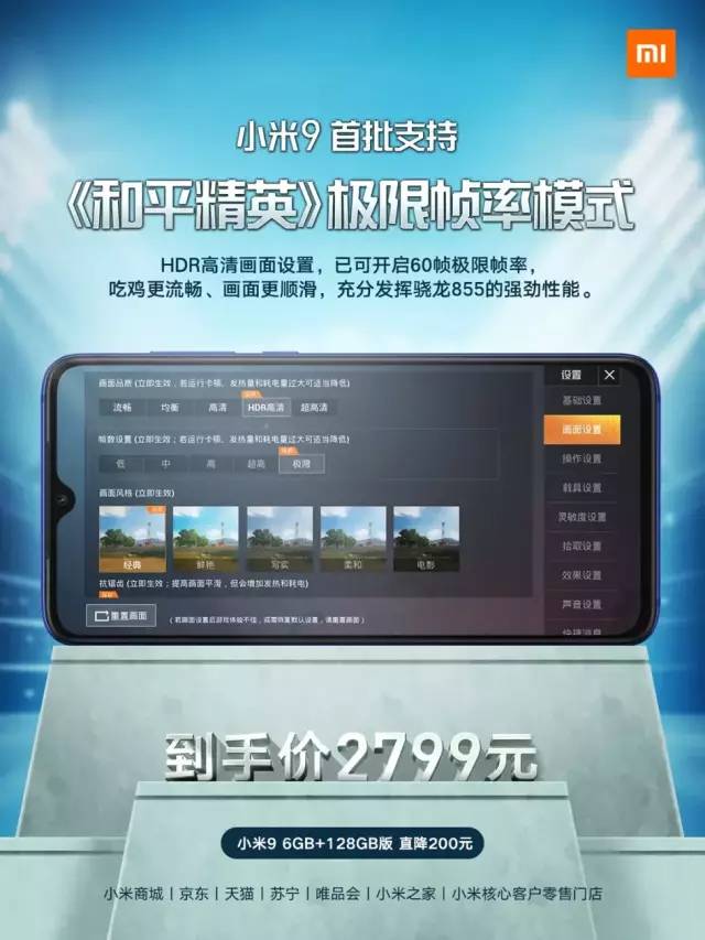 小米 9 已率先支持《和平精英》HDR 高清下的「极限」60 帧模式。