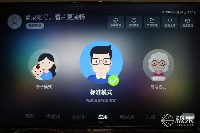 3、简洁模式:这其实更应该叫长辈模式,界面设计及交互非常简单易懂,适合刚接触智能电视的父母使用。