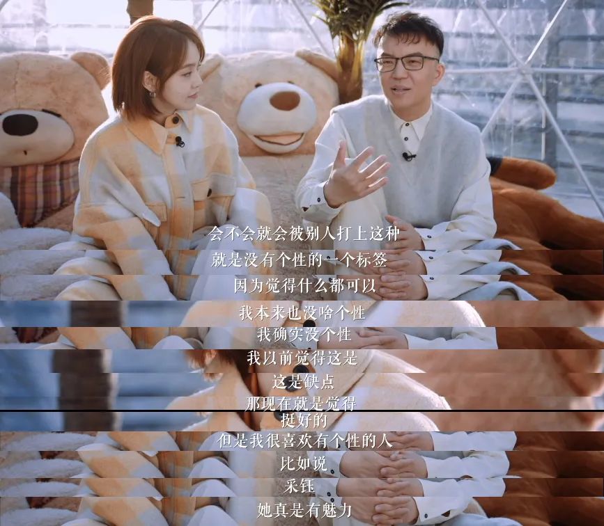 张佳宁的人生态度,用顺其自然来概括极为准确。韦来问起她的好性格,会不会担心被打上一个‘没有个性’的标签,张佳宁坦然应对, “我好像本身就是没个性的人。以前我会觉得这是一个缺点,现在我觉得挺好的,我不能为了让别人觉得我有个性,然后去刻意地去做一些事情让别人感到不舒服。我也喜欢那些有个性的人,他们是有魅力的存在。”