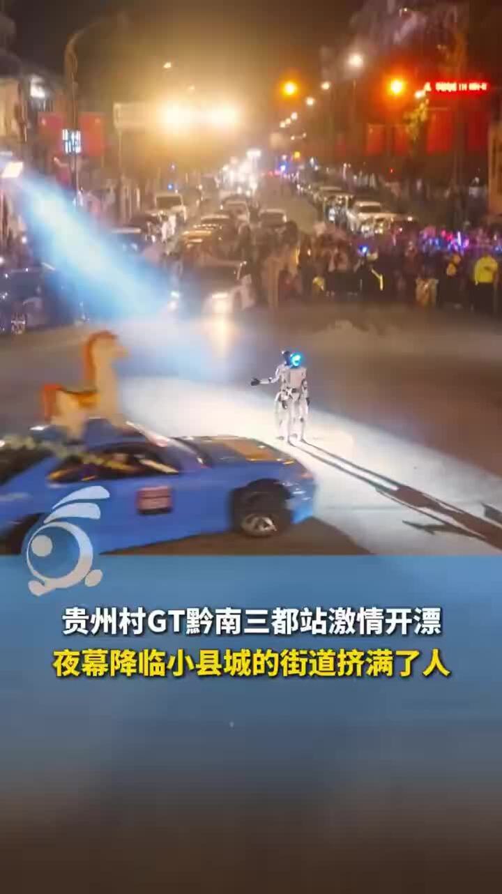 贵州村GT黔南三都站激情开漂,夜幕降临小县城的街道挤满了人,大家都在看赛车“神龙摆尾”#贵州村马 #百姓关注村马 #村GT