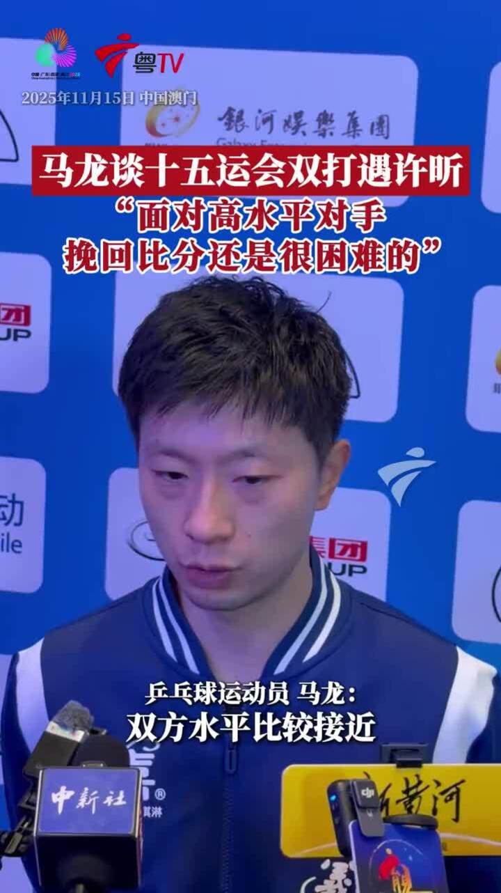 11月15日晚,2025年全运会乒乓球男团小组赛,上海队对阵北京队的比赛中,许昕、周恺3比2战胜黄友政、马龙,为上海队拿下首胜。但最终北京队总比分3比2战胜上海队。赛后马龙表示:“面对高水平对手挽回比