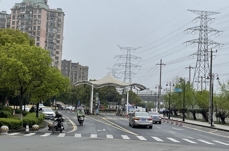 私家车和外面的汽车、单车、公交车、电动车、摩托车都在一条路上通行,社区在出入口的高峰期车流量很大,而即使是非高峰期,也有大量车辆持续进出。