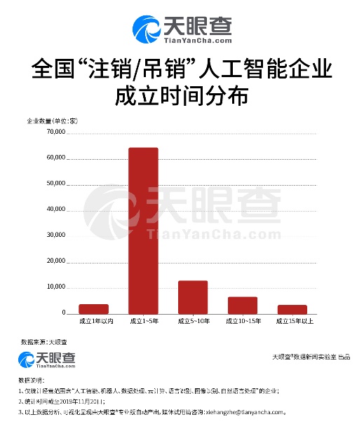 报告指出,全国人工智能企业总量近82万家,且约84%的企业成立时间小于等于5年。作为新兴产业的AI,发展之路也并非一帆风顺:天眼查数据显示,全国共有9.2万家人工智能企业注销、吊销,其中约6.8万家注销、吊销的企业为创业型企业(成立时间小于等于5年)。