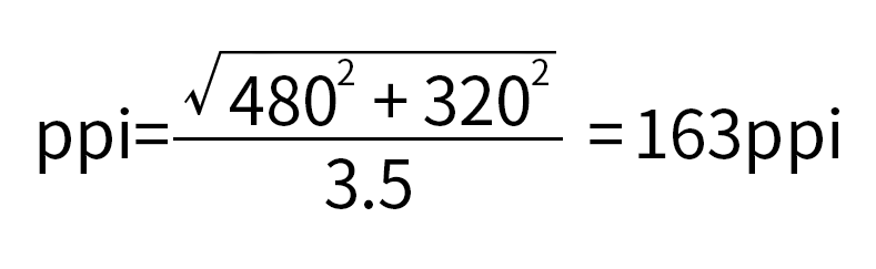 [indent] 举例: [/indent] 比如iphone3gs的像素分辨率是480px×320px,[b]按下图计算即表示在iphone3gs具有ppi为163,物理屏幕宽度约为3英寸,3*163~480,[/b] [b]因此iphone3gs分辨率为480*320[/b]