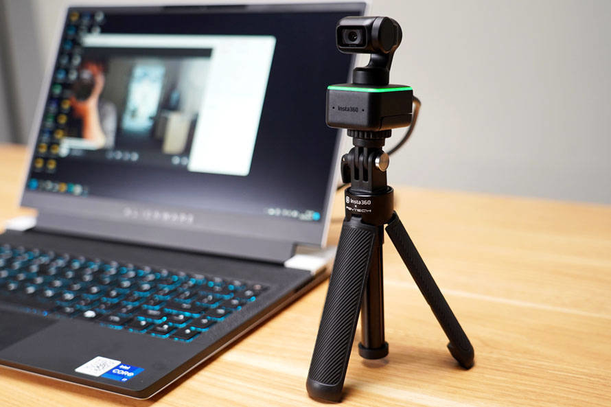 连接方面,Insta360 Link通过USB线直接与电脑进行连接,然后通过专用的软件在可以对摄像头开启手势控制、控制云台等功能,在专用软件中还支持手势控制和云台控制功能,这两个功能不仅可以直接用在主流直播和会议平台等使用场景,而且专用软件内还有更多高阶的功能可满足用户的需求,这款设备不仅支持Windows系统,还支持macOS系统,可使用的设备上更加广泛。除了夹在显示器上,还能通过小型的三角支架,放置在桌面上,这样可以直拍或者仰拍人物。