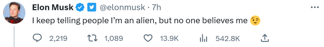 马斯克:「我一直告诉你们我是外星人,但没人信呐。」