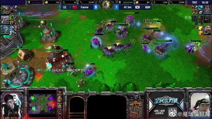 当亡灵的二本完成,Lich出世,小凯直接拖上侍僧发动TR,对此毫无心理准备的毛皇完全不知所措,前期被压残血的大法师不敢冒头防守,小凯的进攻就如同二战德军的闪电战一般直插咽喉,他在前期做的一切战术准备成功,他也成功让现世界排名第三的Sok早早地小组两负出局。