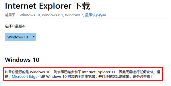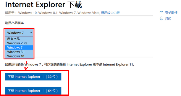 4。如果不是Windows 10系统,则可以选择相应的系统进行更新和安装。请注意,windows 8.0和windows vista当前不支持下载最新的IE浏览器(ie11.0)。
