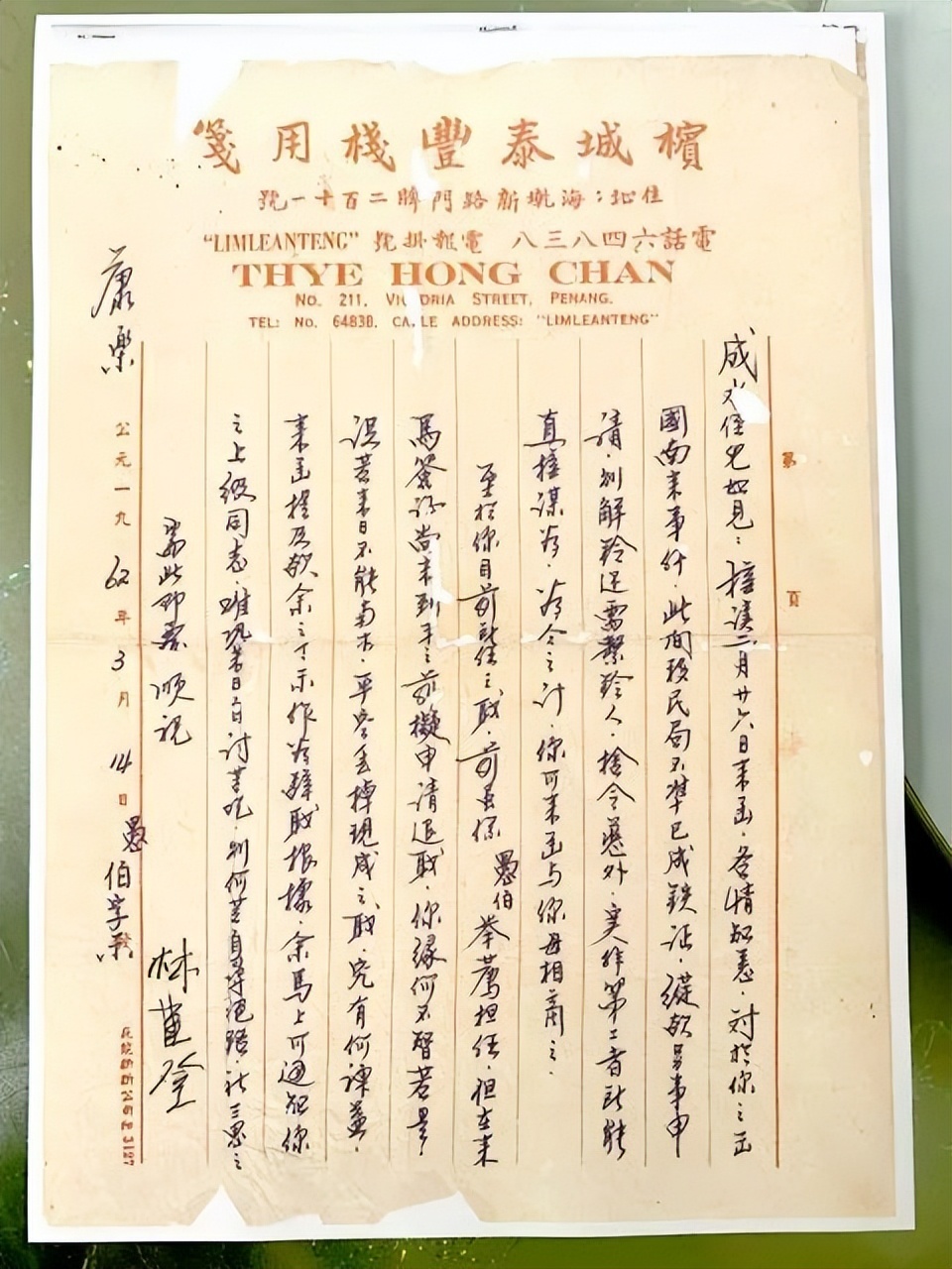 1939 年,日机轰炸潮汕各地,林连登主持成立“马来亚潮侨救乡总会”,捐款献物,支援家乡人民抗日。