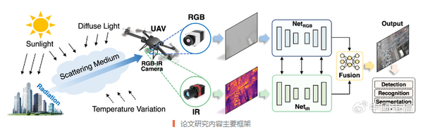 随着低空经济的快速发展,无人机在复杂环境中的持续运行能力面临更高的要求,尤其是在雾霾等恶劣天气条件下,视觉退化问题成为制约其广泛应用的关键技术瓶颈。针对这一挑战,研究团队开发了HDCFN技术,利用红外图像在结构感知方面的优势,通过自适应融合机制动态增强可见光模态的视觉特征,从而有效提升了边缘设备在复杂气象环境中的场景还原能力。