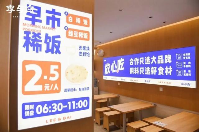 据品牌方透露,李与白在早餐时段的经营收入占比占总门店的55%,早餐时段已经运营成熟。李与白现阶段的目标是,在深耕早餐场景的同时,发力午餐、晚餐场景,力求门店在早餐时段把全天的盈亏平衡点做出来,让午餐、晚餐成为净收入。