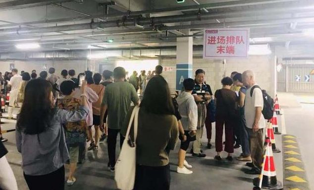 Costco地下停车场里,大批消费者蛇形排队等着进场——这种情形,像极了电影《流浪地球》中的地下城。