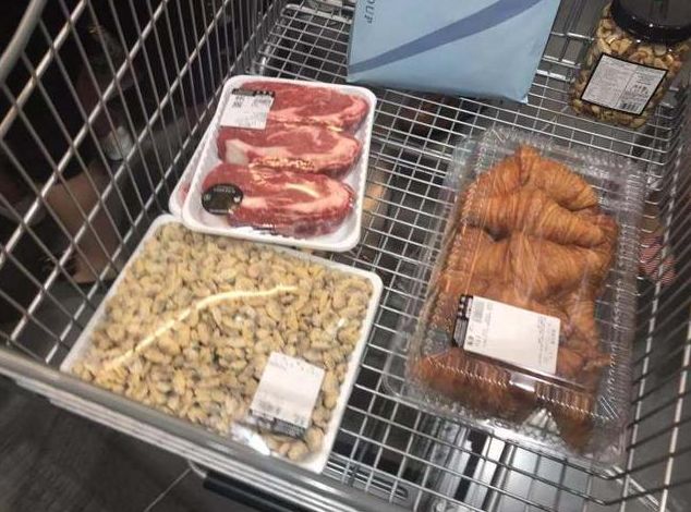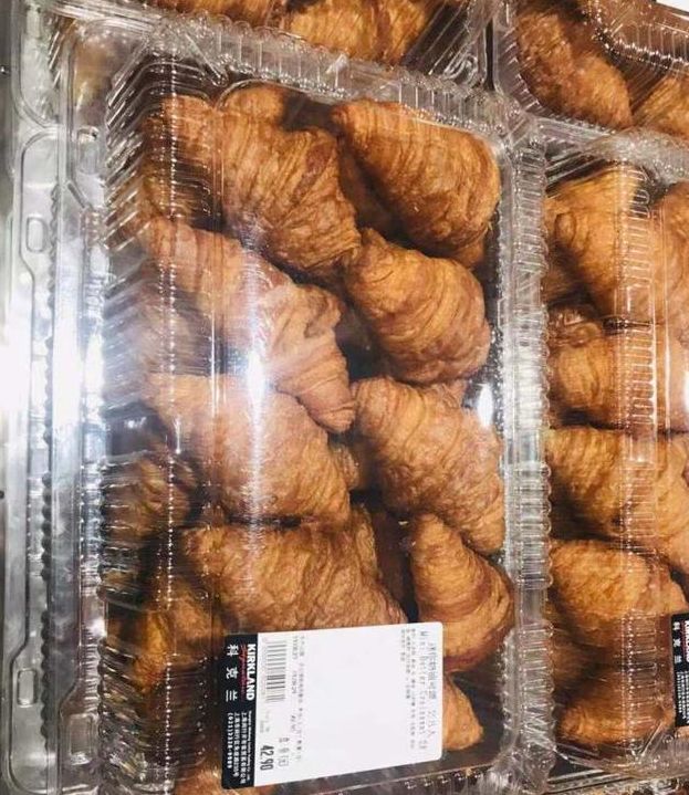 最主要的是,如果我们把购物车里的价格标签拉近看一下,一盒可颂卖到42元,一公斤牛肉200多元,Costco上海店的价格并不低啊!