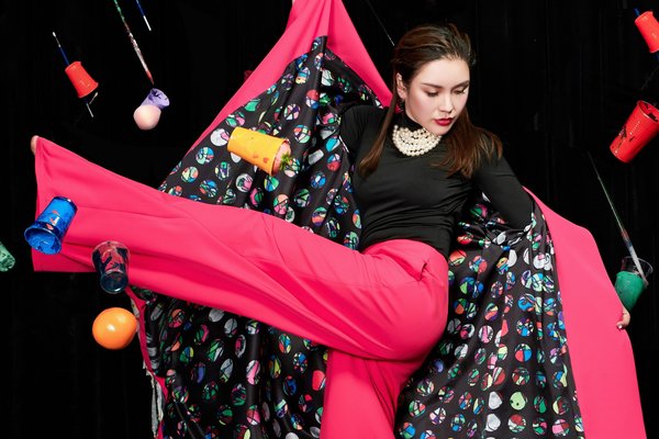 本次PILN品牌2019年秋冬新款系列服装“红与黑”的灵感来源,正是沛翎的绘画作品《红与黑》。沛翎将平面的画作搬到立体的空间中,用服装和人的互动关系来表现“红”与“黑”这对恋人的故事,其设计概念也源自生活中恋人之间亲密感与空间感的探索--“红”与“黑”是一对恋人,他们在这个世界里相爱着,但又彼此保留空间。这个空间,刚好是一个吻的距离,线条记录了他们爱的印记。