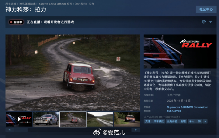 《神力科莎:拉力》下月上线抢先体验版