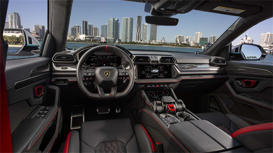 内饰方面,新车采用了兰博基尼标志性的“飞行员体验”设计元素,车内整体配色以黑色为主,并加入了红色元素进行点缀,看上去显得格外运动。值得一提的,新车内饰还采用了迈阿密专属LOGO,以突出其与众不同的身份。