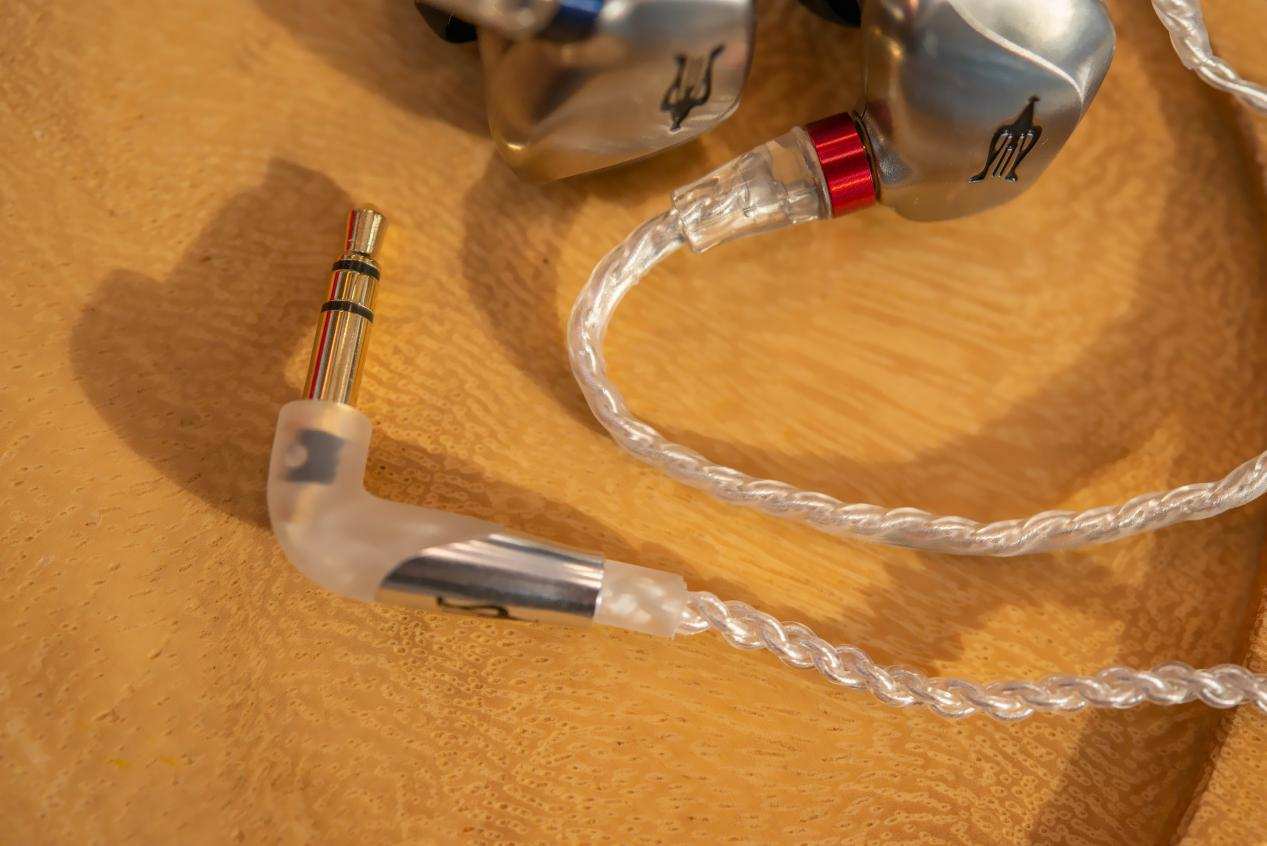 不过,Rai Solo标配的线材素质也是不错的,4股镀银金属线加上防缠绕编织,材质和做工都是可以的,配了3.5mm镀金弯插头,接头使用半透明的抗压材质,耳挂部分内置了一条用于固定金属条。