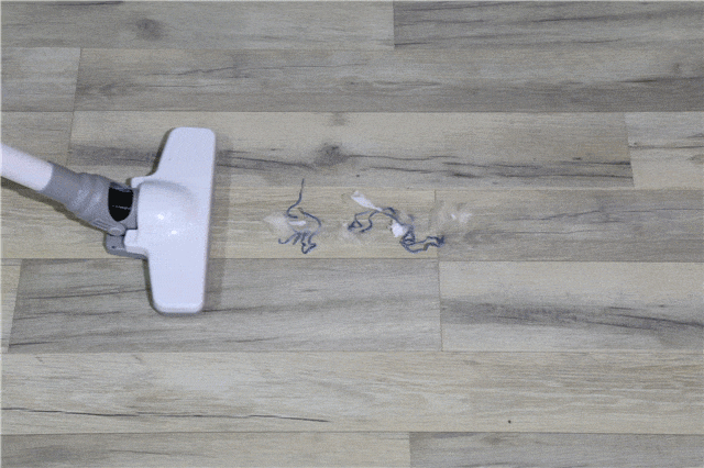 普沃达 D1 除螨仪一吸而过,垃圾全部吸进集尘盒,并未发生缠绕的尴尬;苏泊尔 VCM 01X-01 除螨仪也将垃圾全部清洁干净,但是模拟的垃圾全部缠绕在了滚刷上。