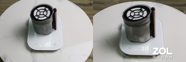普沃达 D1 除螨仪原尘盒重量为214g,清洁后重量为313g