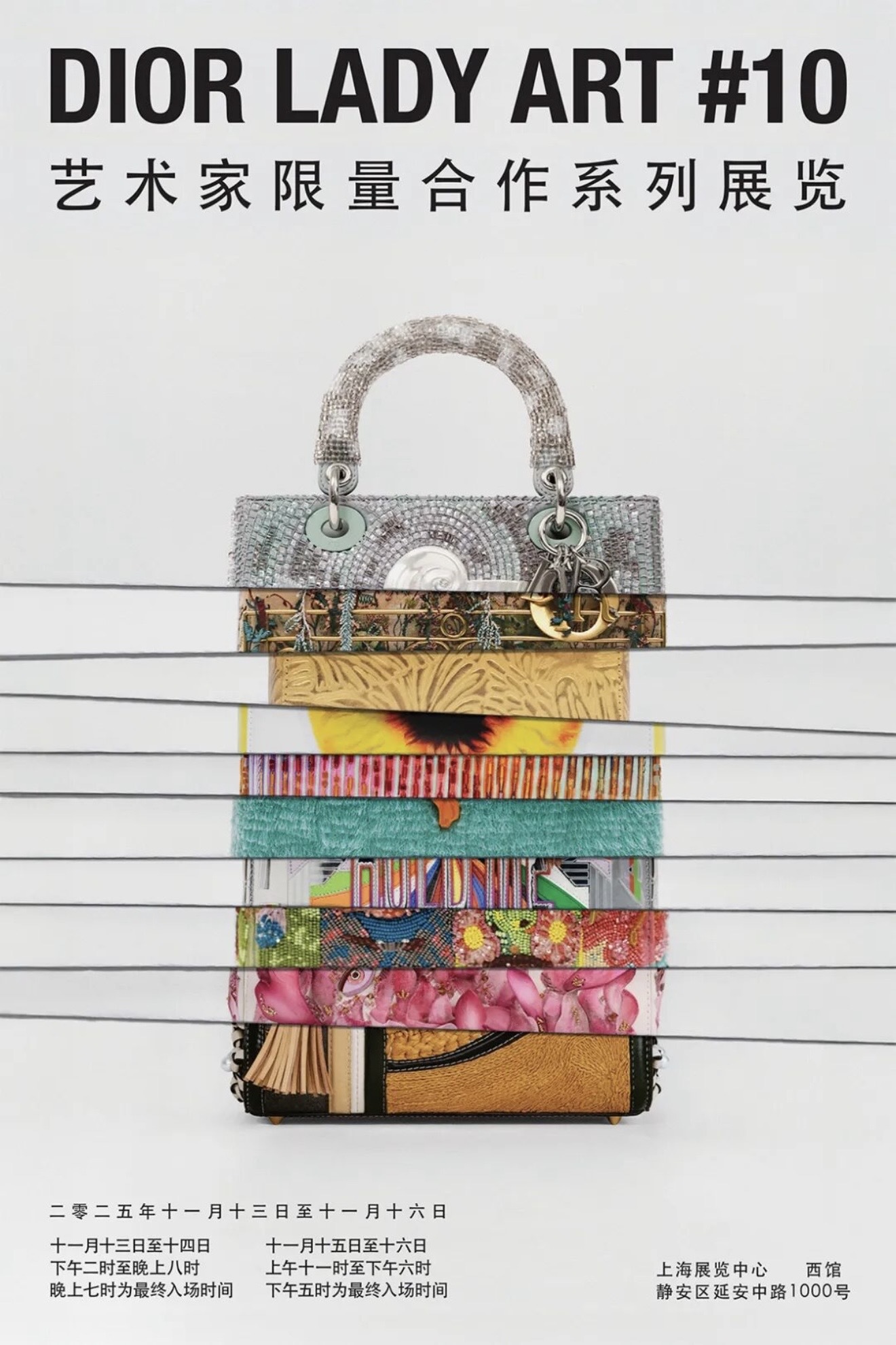 二零二五年十一月十二日,“Dior Lady Art #10”艺术家限量合作系列展览于上海展览中心*揭幕,并于二零二五年十一月十三日至十六日对公众开放。藉 ART021上海廿一当代艺术博览会**开幕之际,该展览作为博览会的一部分亮相,进一步彰显了迪奥与中国之间的深厚渊源。值此“Dior Lady Art”艺术家合作项目十周年之际,展览还特别呈献了过去十年间的珍藏佳作,深情回溯这段绵延十载的共创旅程。