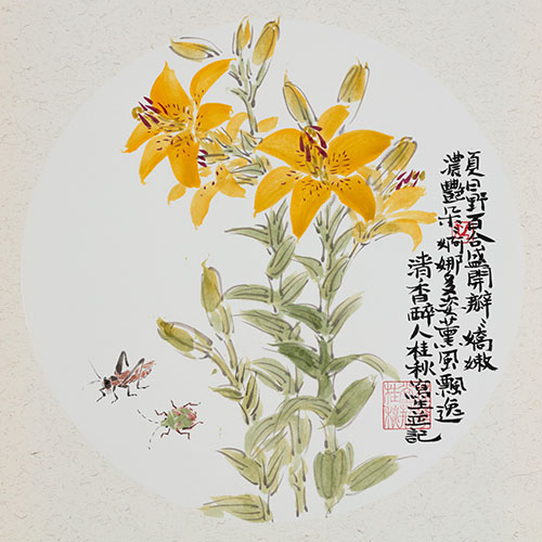 写生花鸟草虫团扇。荆桂秋2020年创作