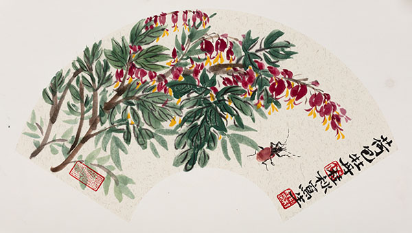 写生花鸟草虫图扇。荆桂秋2020年创作