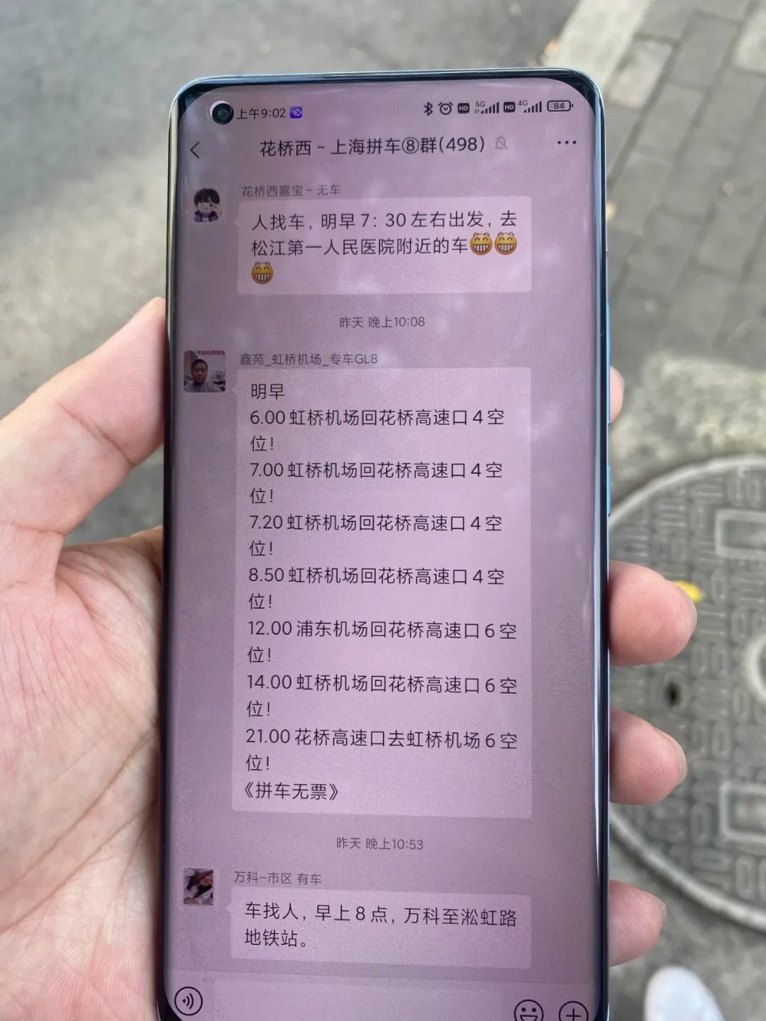 八点半出发到虹桥刚刚好,即便是晚几分钟到,多加会班也没有太多影响,着急的话偶尔打个车,因此他手机有各种各样的拼车群