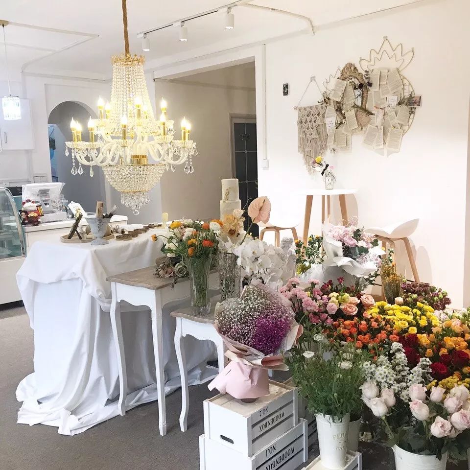 店铺以白色复古风结合花艺布置,让每一个角落的细节都透露着精致感,高雅又静谧,极适合拍照。