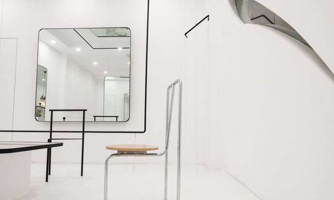 小编一进店就被这个巨大吊灯惊到,这浓浓的工业风,纯白的装饰,四面八方的镜子,随手拍一张就是ins风美照。