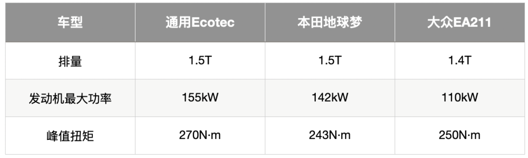 在账面参数上,这具发动机的最大额定功率范围放在了135kW~155kW,相比上代1.5T机头提升了26%,升功率最高更是突破了100kW,同时最大扭矩输出范围250Nm~270Nm,比上代提升8%,并且峰值扭矩对应的转速区间更为宽泛,在中低速区间的加速表现更从容自如。横向和目前市场上装机量最多的大众1.4T/本田1.5T相比,通用的这台1.5T发动机在参数层面已经表现出碾压之势。