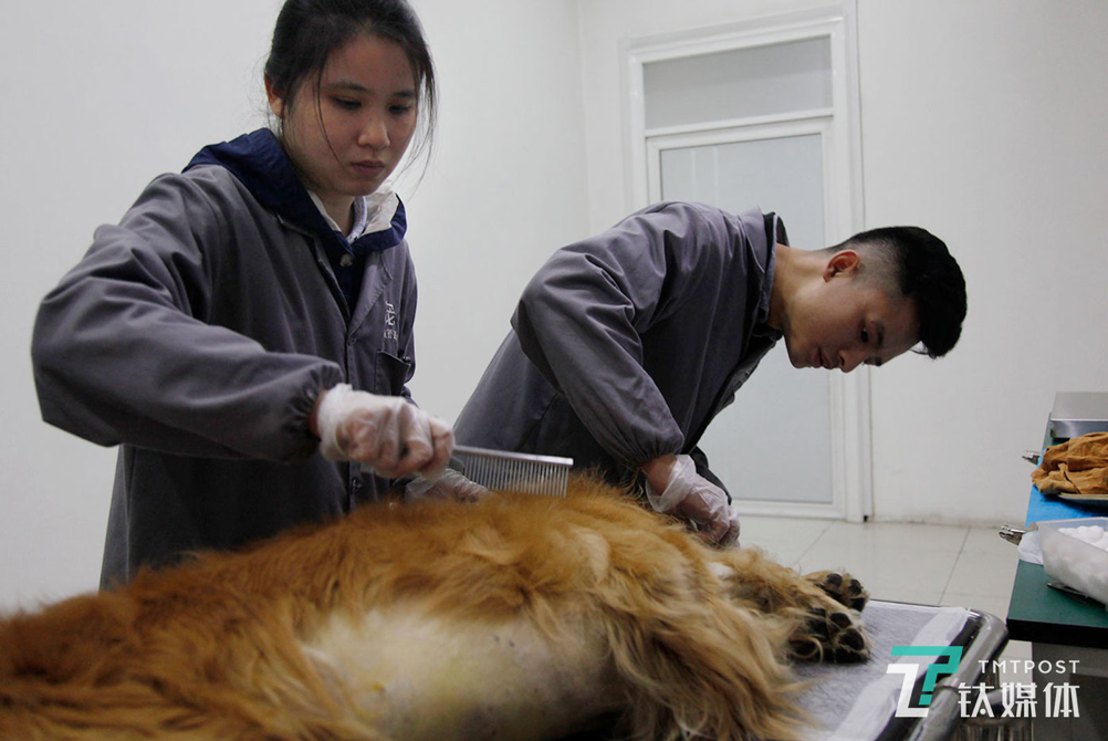 Besides combing the fur, undertakers need to also clean a deceased pet's oral and nasal cavities and wash away urine and feces from its body, attempting to restore its appearance to its former clean self.