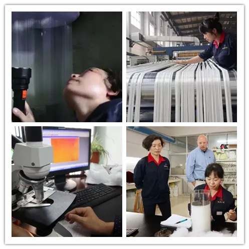 然而,海科纤维的初创并非一帆风顺。公司创立之初并没有明确的发展方向,海科纤维董事长李军回忆道,“我们懵懵懂懂进入行业,感受到理想与现实的差距。”直到2013年的一次国外考察彻底改变了企业的命运。将塑料瓶变成循环再生纤维并非易事,塑料瓶原料的多样性、颜色和纯度的差异,以及大量杂质的存在,都给生产带来了极大的挑战。“2013年,我们了解到,韩国市场当时有一款0.9d再生涤纶短纤维填充实芯纤维,其制成品的舒适性、回弹性都是企业想要达到的效果;德国市场有一款1.5d再生涤纶短纤维填充中空纤维,性能也十分优越……”海科纤维董事长李军说,通过对比和调研,海科纤维更加坚定了专注再生三维中空填充纤维赛道,用最先进的设备和技术做最先进、原生态的产品。