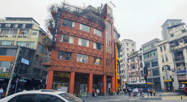 沿着永庆坊一路向东行4公里,在北京路连片骑楼中,有一幢红色的“歌莉娅225”尤为显眼。