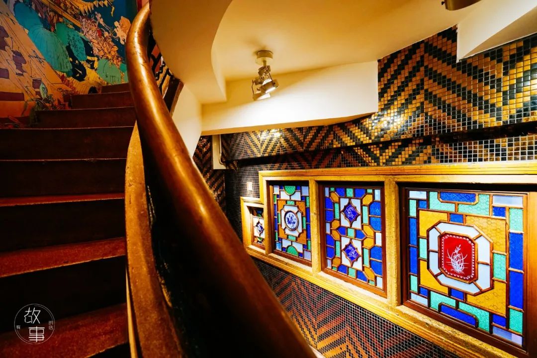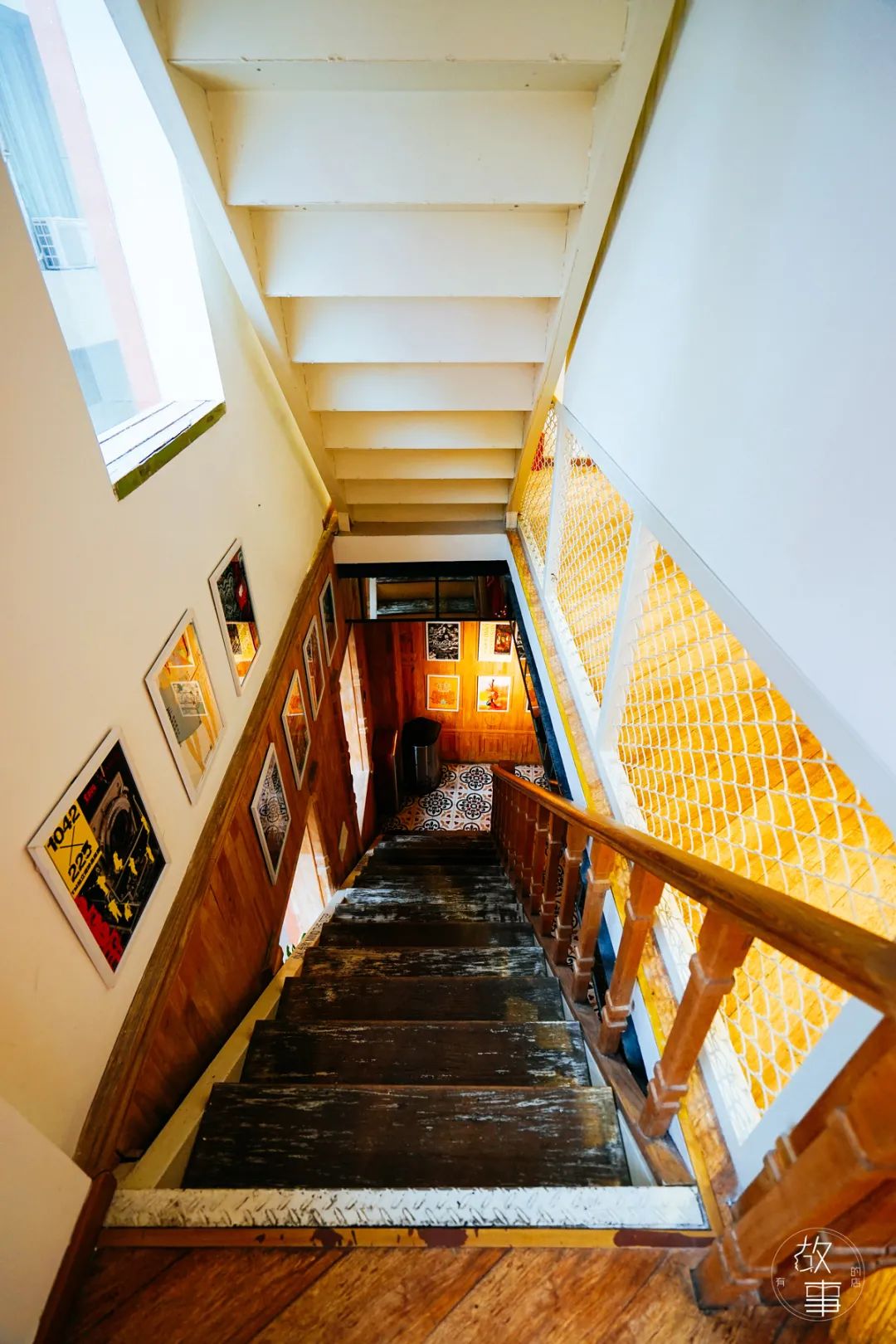 在这栋被改造完成的建筑里,处处都是过去的回忆:狭长又陡的旋转楼梯,颇具怀旧感的水磨石米和花街砖,五彩透光的满洲窗等等,艺术感爆满。