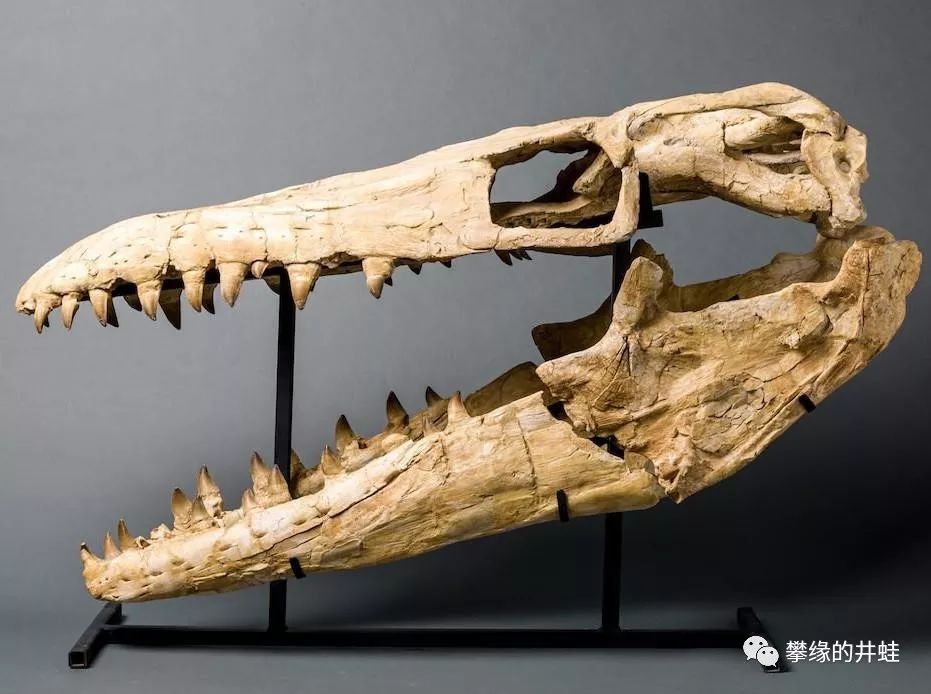 上图:沧龙头骨化石;下图:古蜥鲸头骨化石。尽管对趋同演化让两代海洋霸主呈现相近的外形,但根据蜥形纲的典型特征:同形齿和“组合式”下颌;合弓纲的典型特征:异型齿,单一下颌骨和齿骨-鳞骨关节,还是很轻易确定它们的归属。图片来源自网络。