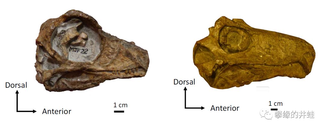 卡鲁盆地还发现了一只巴莫鳄Baby的完整头骨。它们小时候居然是个大眼萌,标志性的犬齿也还没有长出来,还蛮可爱的。图片来源自[12]。