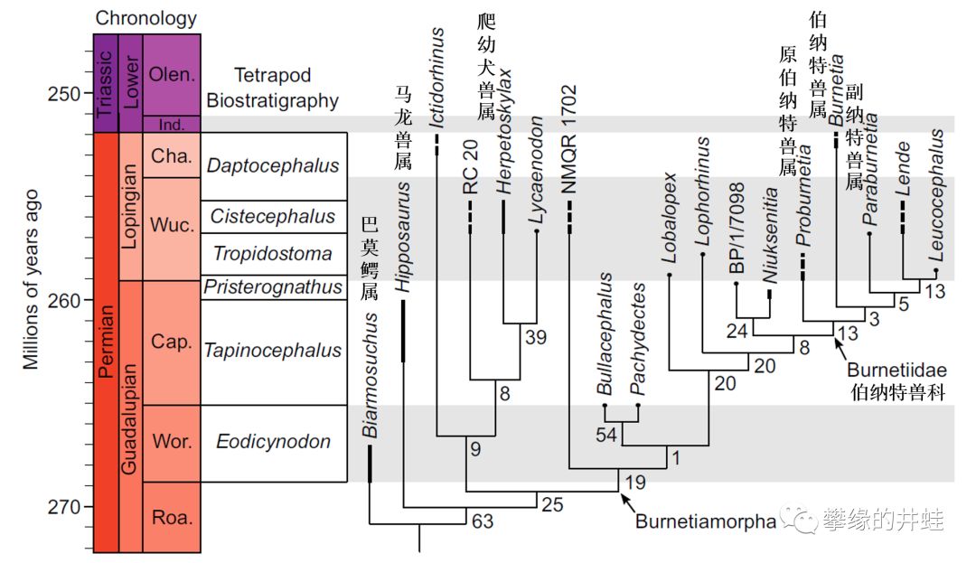[9] MICHAEL O. DAY, ROGER M. H. SMITH, JULIEN BENOIT, etal., A NEW SPECIES OF BURNETIID (THERAPSIDA, BURNETIAMORPHA) FROM THE EARLY WUCHIAPINGIANOF SOUTH AFRICA AND IMPLICATIONS FOR THE EVOLUTIONARY ECOLOGY OF THE FAMILYBURNETIIDAE. Papers in Palaeontology, 2018, pp. 1–23, doi: 10.1002/spp2.1114