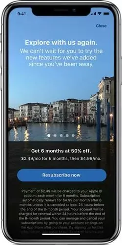 有趣的是,在此之后促销订购价格将不会显示在App Store中,用户将无法明确知晓其他用户是否获得了更优惠的价格,但应用开发者不仅可以对多个折扣进行A/B测试,同时还可以清楚的看到哪些用户禁用了自动续费,并提供最可能吸引他们回来的促销活动。 很显然,苹果此举是为了通过优惠的订阅折扣来吸纳更多的用户加入到苹果的订阅服务中来,包括那些想要订购订阅服务又觉得价格贵的用户,以及那些订阅了之后又取消了订阅服务的用户。 除了订购折扣,苹果还将为开发者提供更大的灵活性——允许开发者在一次活动中最多可以执行10种不同的促销价格。如此一来,开发者便可以根据不同用户的使用习惯提供更有吸引力的促销活动。
