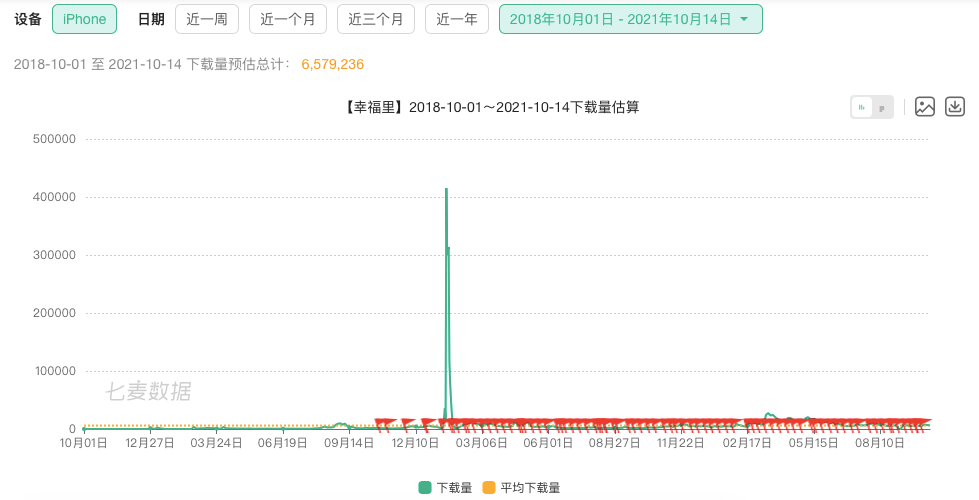 七麦数据:过去三年幸福里IOS下载量预计为650万
