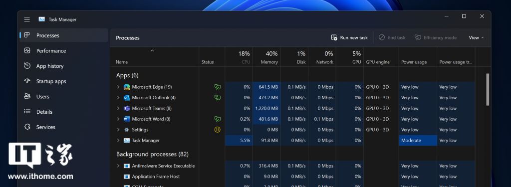 微软更新了任务管理器中的进程页面,以便热图中使用的颜色现在基于强调色。请注意,在某些情况下,微软将使用默认的蓝色强调色以确保可读性。微软在本月的 Windows Insider 网络广播中对此进行了演示。