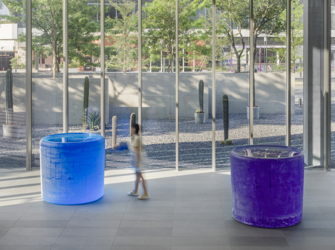 夏日初启,位于广东佛山顺德的和美术馆呈现了当代最富影响力之一的艺术家罗尼·霍恩(Roni Horn)的个展“非梦 亦梦”。步入展览,多件直径与高度均超过1米的大型雕塑作品《双·水》富有韵律性地散落在展厅的平面空间内。登上步梯,观众则可更加清晰地观察、对照雕塑清澈饱满的顶面与磨砂粗糙的侧立面:《双·水》本为玻璃,在艺术家的意志力与时间的双重作用下,凝结成宛若一汪又一汪“水”,映照着建筑、天气与面孔,成为这片亚热带土地上最洁净、清凉的存在。