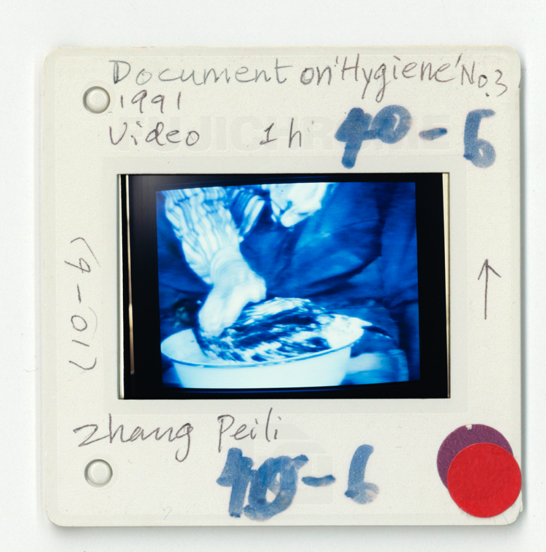 下:张培力《(卫)字3号》的35毫米彩色透明幻灯片,1991。