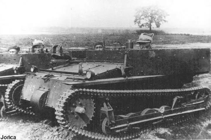小巧便宜的卡登.洛伊德MK.VI超轻型坦克同样引起了波兰的兴趣。1929年,波兰出资从英国购买了一辆该型坦克并在6月20日送到伦贝托夫(Rembertów)进行测试,对结果感到满意的波兰决定加购10辆,这些坦克于8月交货并于9月进行了一次师级军演,结果表明该坦克机动性尚可且容易隐蔽,适合执行侦察任务,尤其是适合支援骑兵行动,于是决定买下专利生产权。