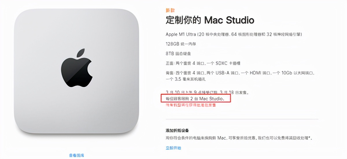 价格方面,搭载M1 Ultra芯片,64GB+1TB起步的Mac Studio售价29999元起。最贵的128G内存、8TB固态硬盘版本要59999元。每人限购2台,大家量力而为。此外它还有M1 Max芯片版,32GB+512GB起步,国行售价14999元起。