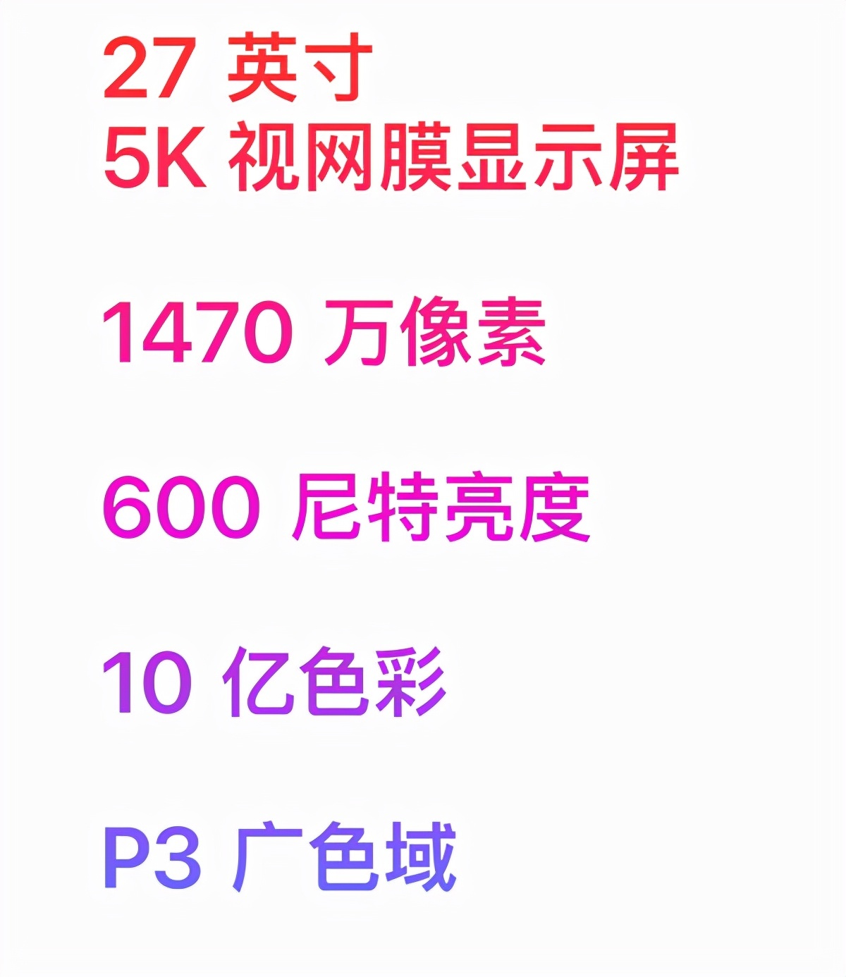 Studio Display采用了一块27英寸全面屏,拥有5K分辨率,600nit亮度,支持TrueTone原彩显示,在显示效果上能真实、护眼,同时屏幕上还支持纳米纹理玻璃选配。