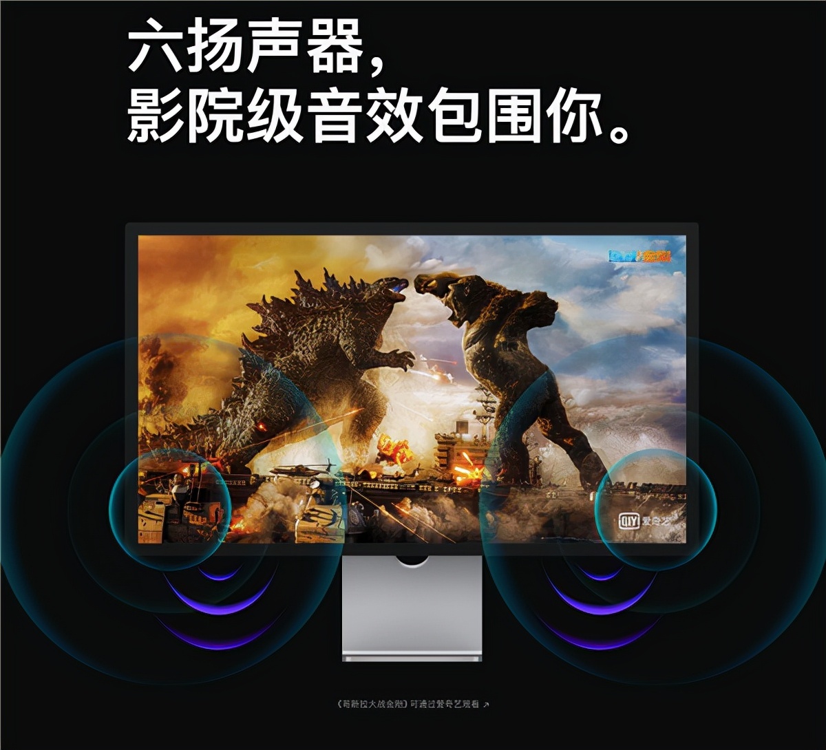 Studio Display自带六个扬声器单元,其中四个低音单元,两个高音单元,支持空间音频,支持杜比全景声。Studio Display可支持选配多款支架,可上下、旋转均可实现。